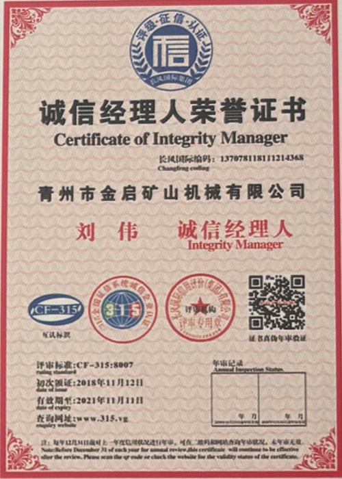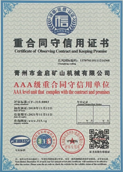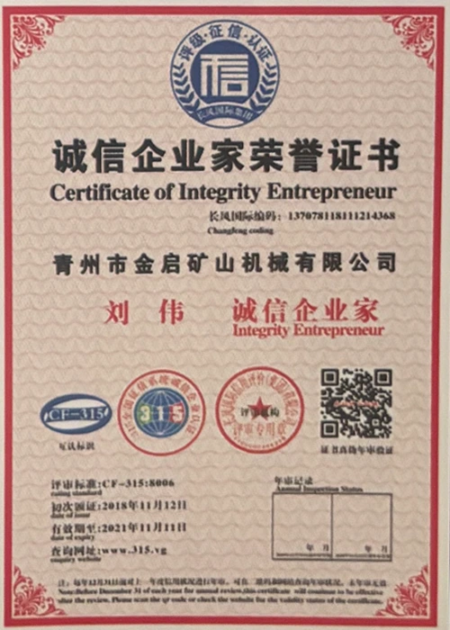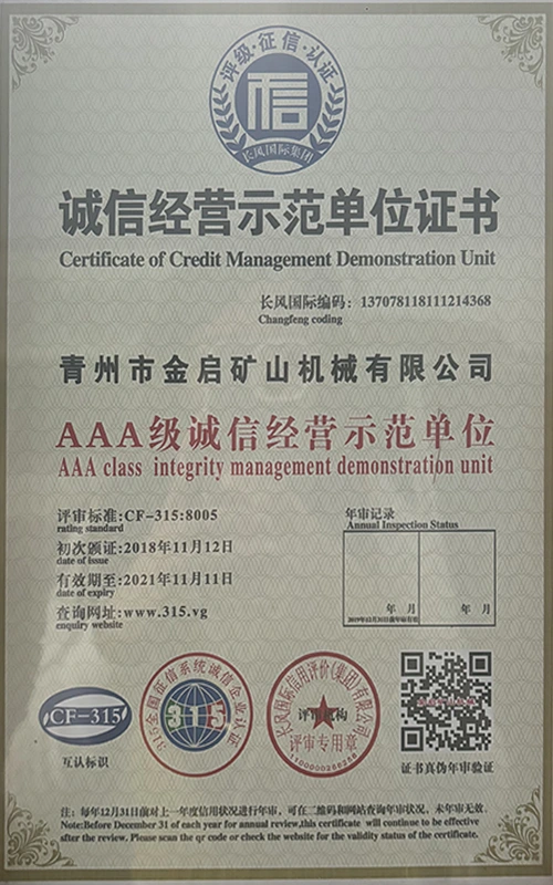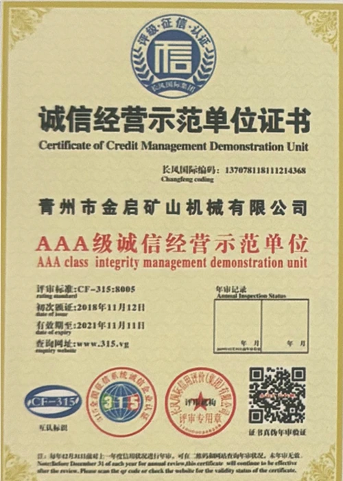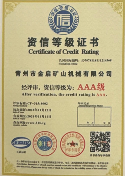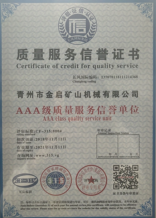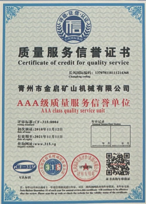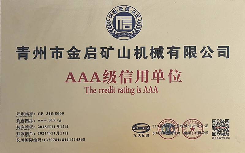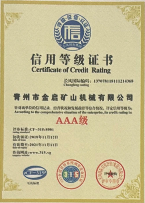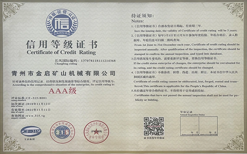 उद्योग में वर्षों के गहन अनुभव के साथ, सख्त गुणवत्ता नियंत्रण और निरंतर तकनीकी नवाचार पर भरोसा करते हुए, कंपनी ने कई आधिकारिक योग्यताएं, प्रमाणपत्र और पेटेंट प्रमाणपत्र प्राप्त किए हैं, जिनमें आईएसओ गुणवत्ता प्रबंधन प्रणाली प्रमाणन, खनन उत्पाद सुरक्षा प्रमाणीकरण, साथ ही उपकरण संरचना अनुकूलन और ऊर्जा-बचत प्रौद्योगिकी उन्नयन के लिए कई आविष्कार पेटेंट और उपयोगिता मॉडल पेटेंट शामिल हैं, जो गहन तकनीकी ताकत और अनुपालन उत्पादन गारंटी का प्रदर्शन करते हैं।